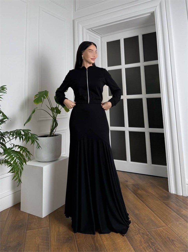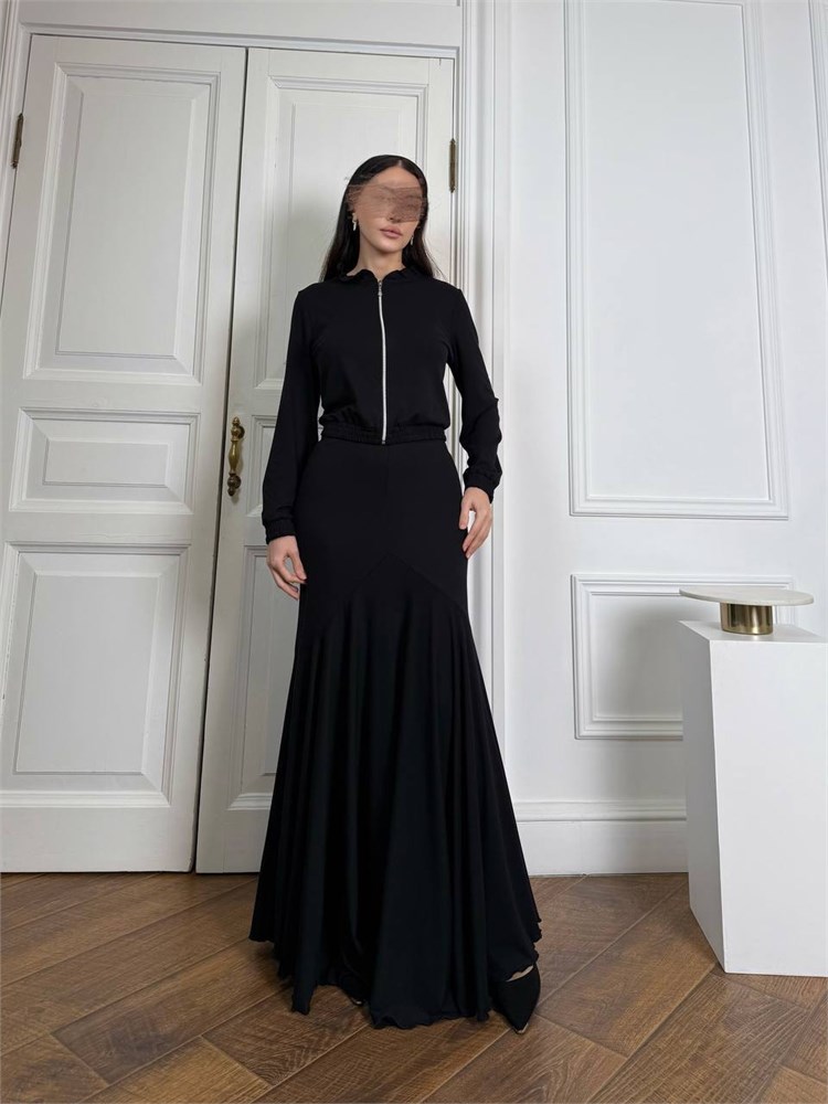 Двойка (укороченный бомбер + юбка рыбка) черный 3800