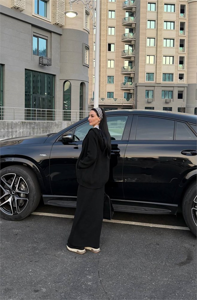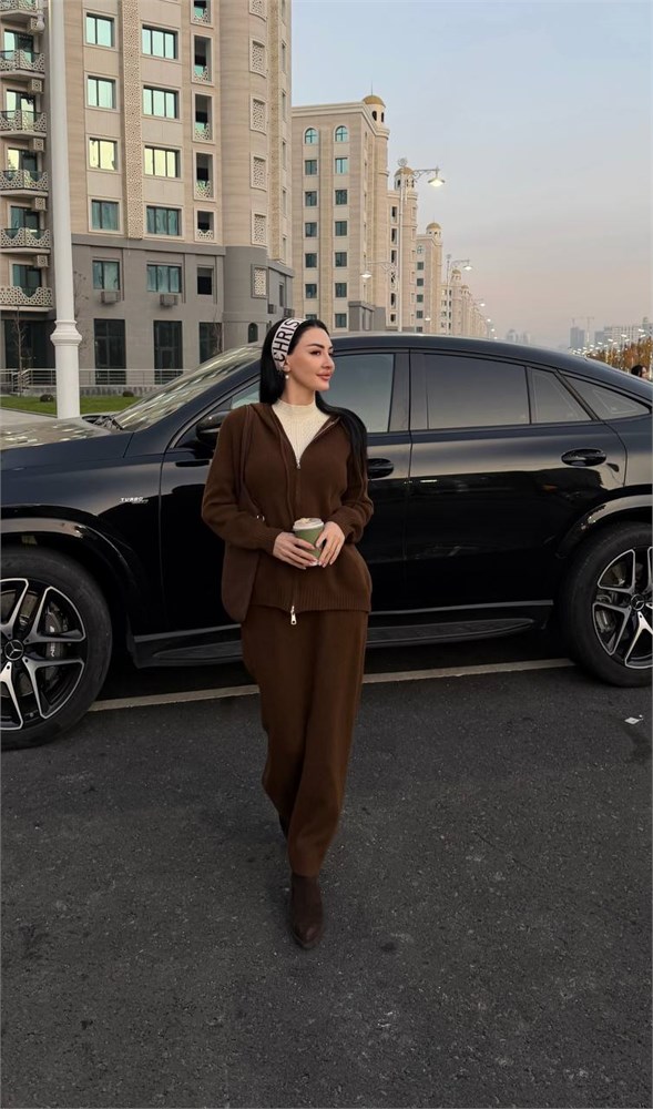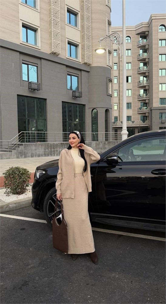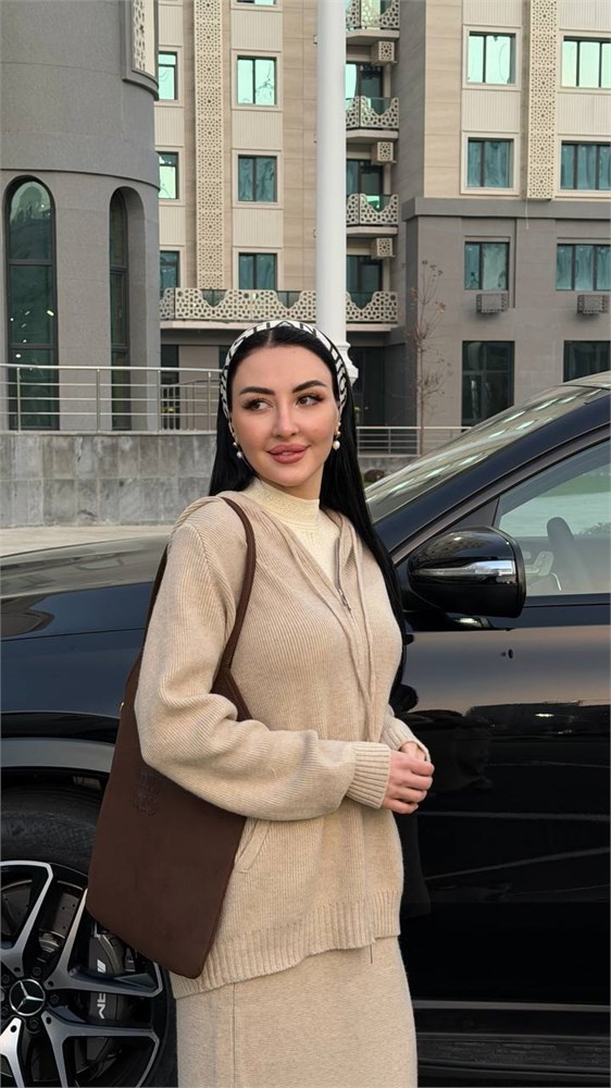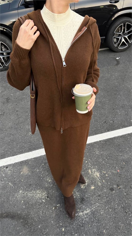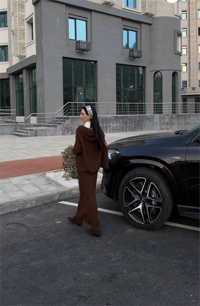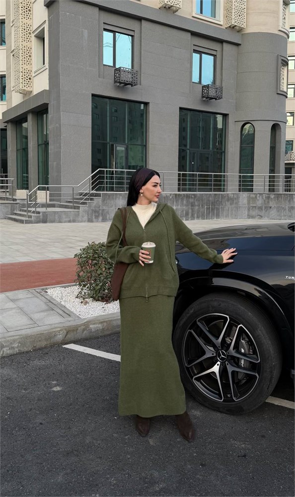 Двойка вязаная (бомбер с капюшоном + юбка прямая) 4200