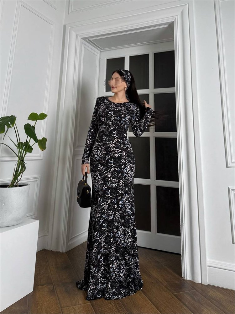 Платье базовое moda_ais со сборкой на талии, ткань премиальный бамбук черный в голубой цветочек 3000