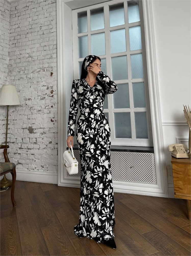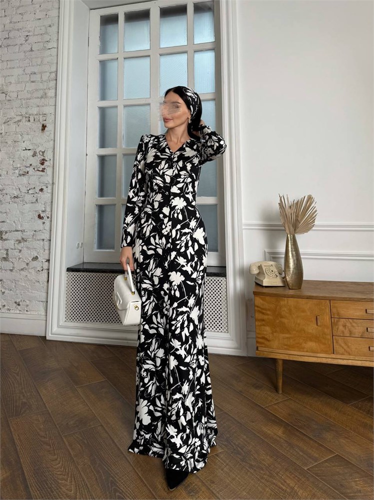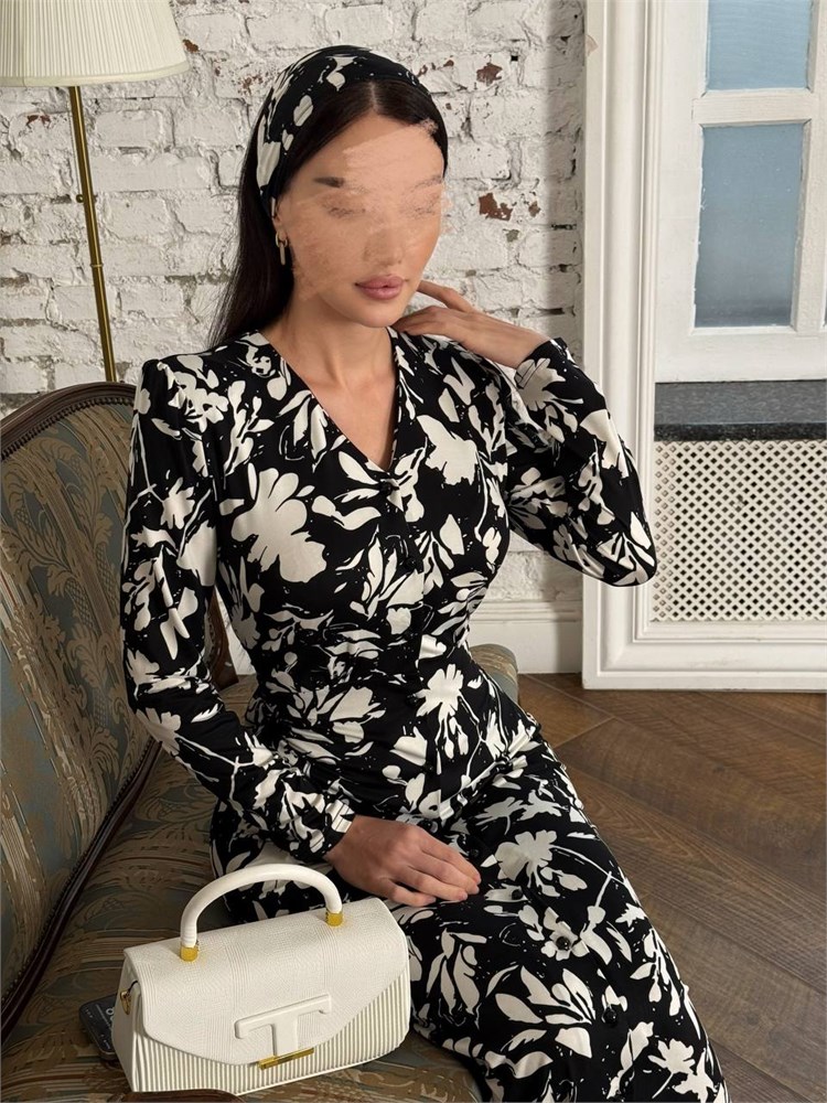 Платье халат moda_ais ткань премиальный бамбук черно-белые крупные цветы 3000