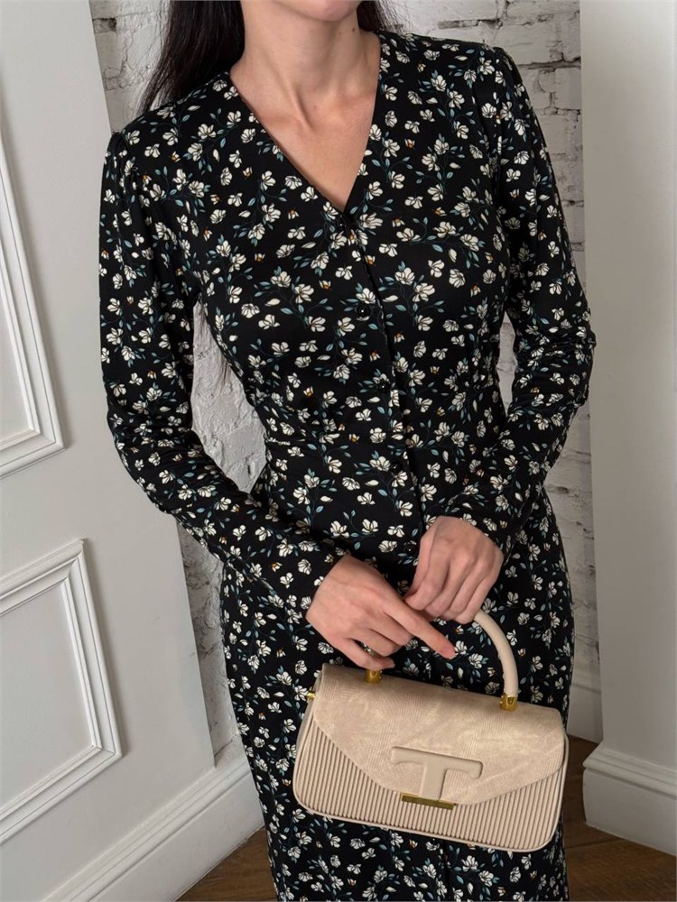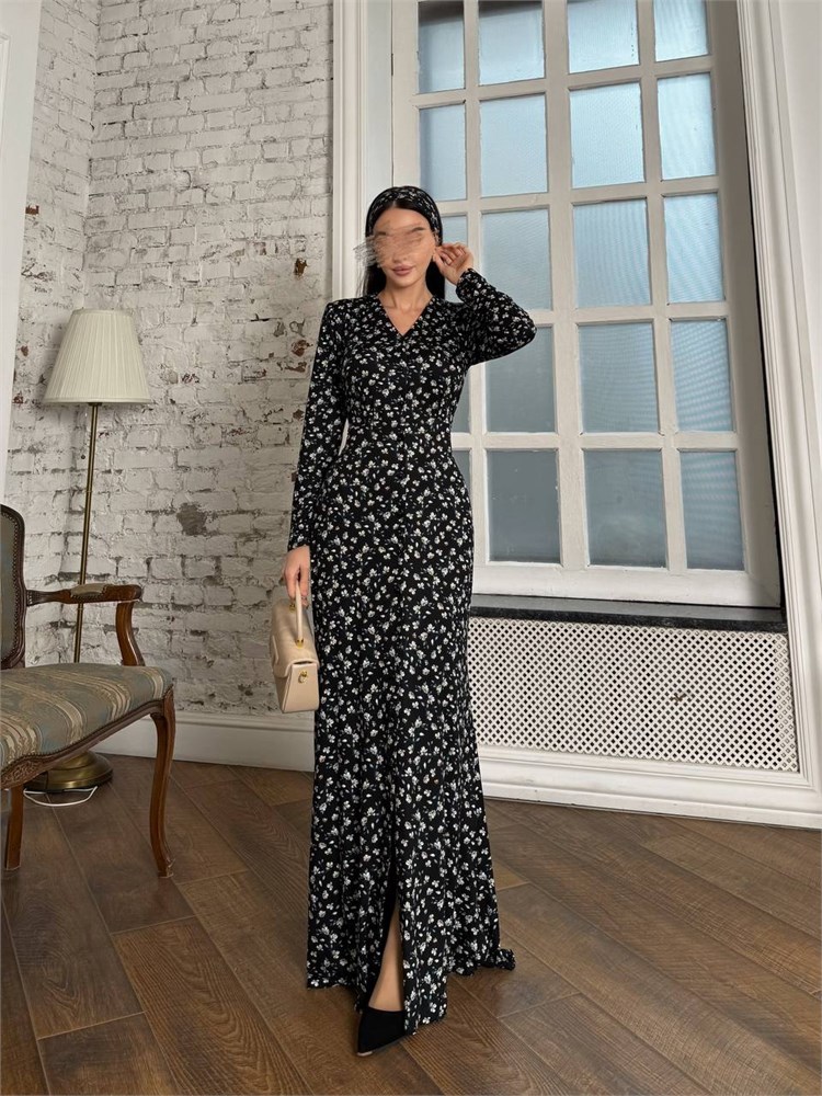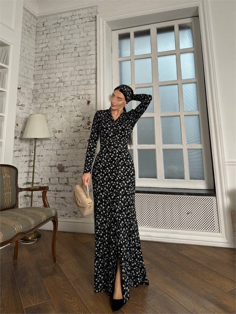 Платье халат moda_ais ткань премиальный бамбук черный с белыми ромашками 3000