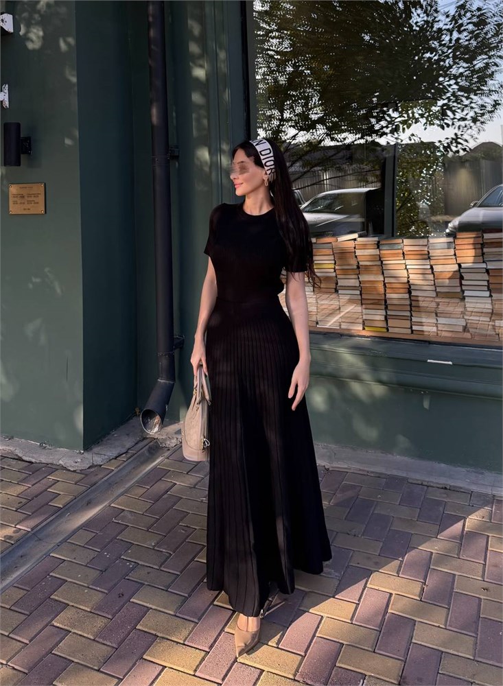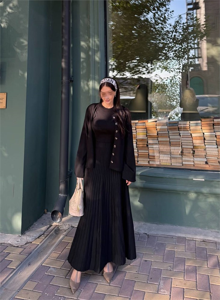 тройка Bella вязаная (футболка+ кардиган+ юбка) черный 4500